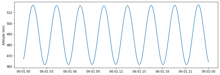 plt.ylabel('Altitude (km)')fig = plt.figure()