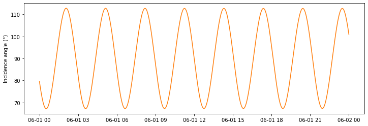 plt.ylabel('Incidence angle (°)')plt.figure()