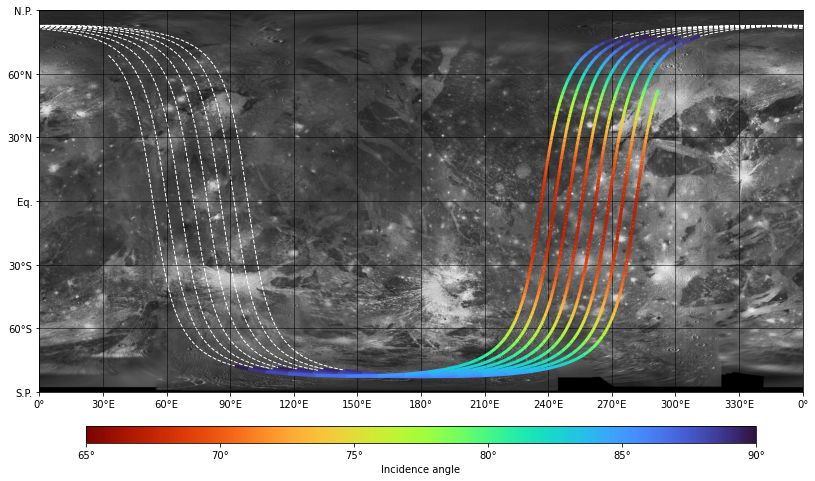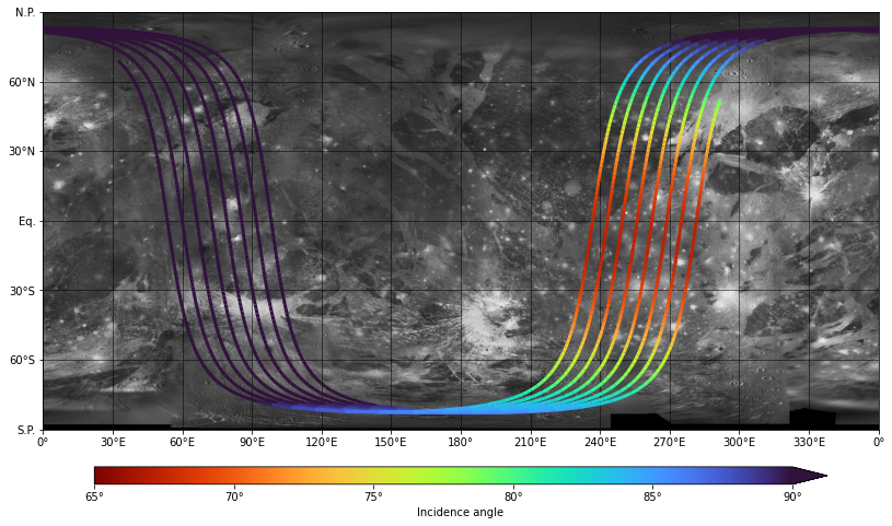 plt.ylabel('Incidence angle (°)')from moon_coverage import GANYMEDE